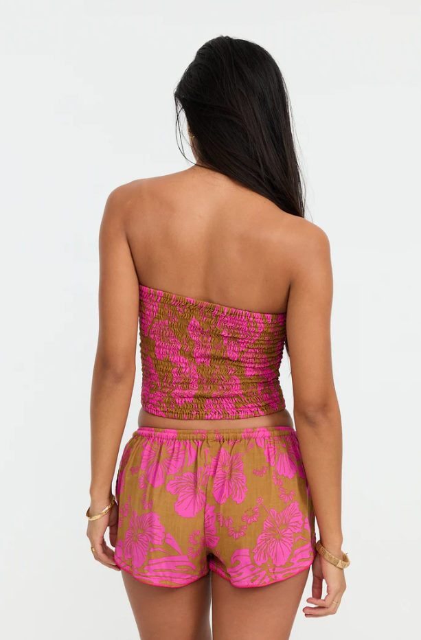 Introducing the Namika Tube Top! The perfect top to go with any of our shorts and skirts! This strapless, all over smocked tube top has ruching in the cleavage area.