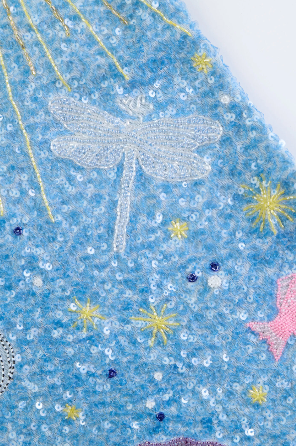 The embellished and hand beaded Oceana dress features shimmering ocean blue sequins and beautiful details all over. The little pearls and magical deep sea inspired beadings combined with the scalloped neckline will bring out the ethereal siren within you.