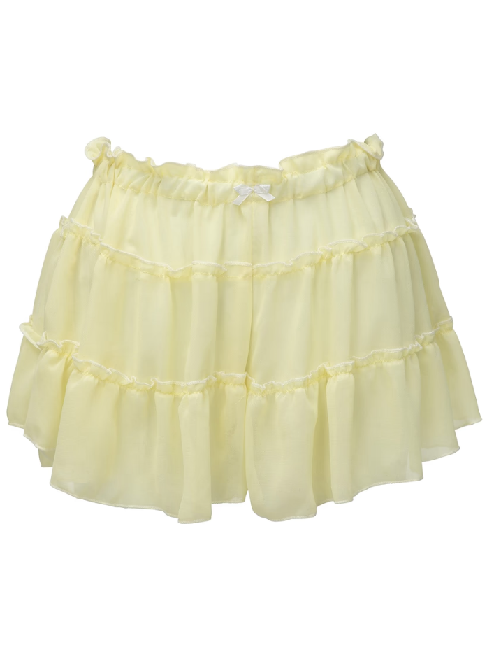 The Valeria shorts are lightweight, sheer shorts with a flowy, layered design featuring soft ruffles for a feminine and playful look. The elastic waistband provides comfort and an easy fit, making them perfect as a breezy cover-up or for casual summer wear.